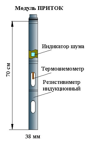 Модуль Приток (термоанемометр СТИ, индукционный резистивиметр, трехканальный индикатор акустических шумов)