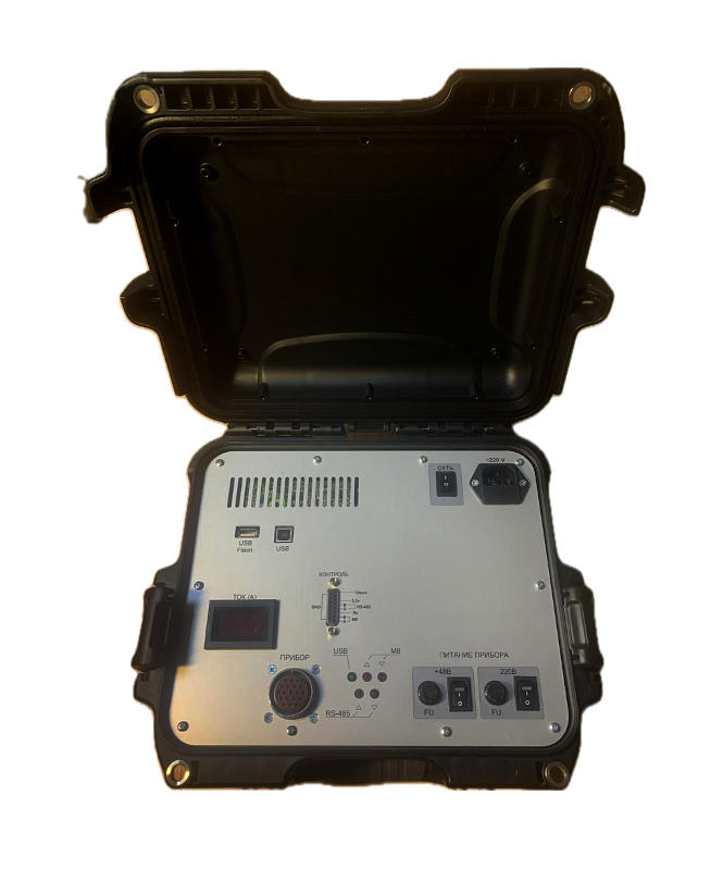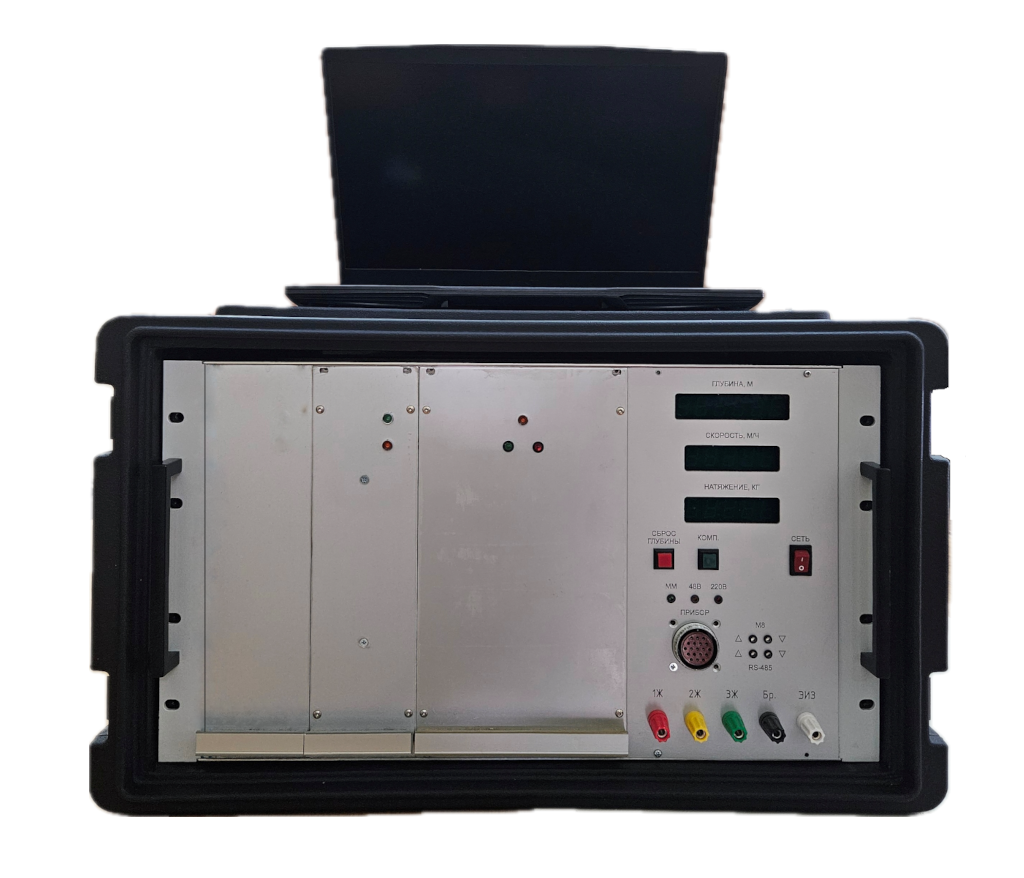 Предназначен - для обслуживания парка кабельно-автономной аппаратуры, а также кабельной аппаратуры с напряжением питания переменного и постоянного тока производства ООО «Нефтегазгеофизика», а также скважинной аппаратуры сторонних производителей. Исполнение в стандартной геофизической стойке с высотой блока 6U.