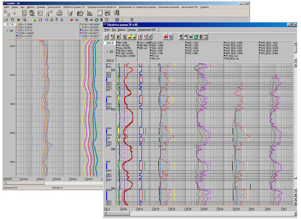 Программно-методическое обеспечение «LogWin-ЭК» - система комплексной обработки данных электрического и электромагнитного каротажа, предназначено для определения электрических параметров пород по комплексу данных БКЗ, БК, ИК, ВИКИЗ, БМК в пластах различной мощности, с целью проведения попластовой обработки и выдачи заключения по данным ГИС.