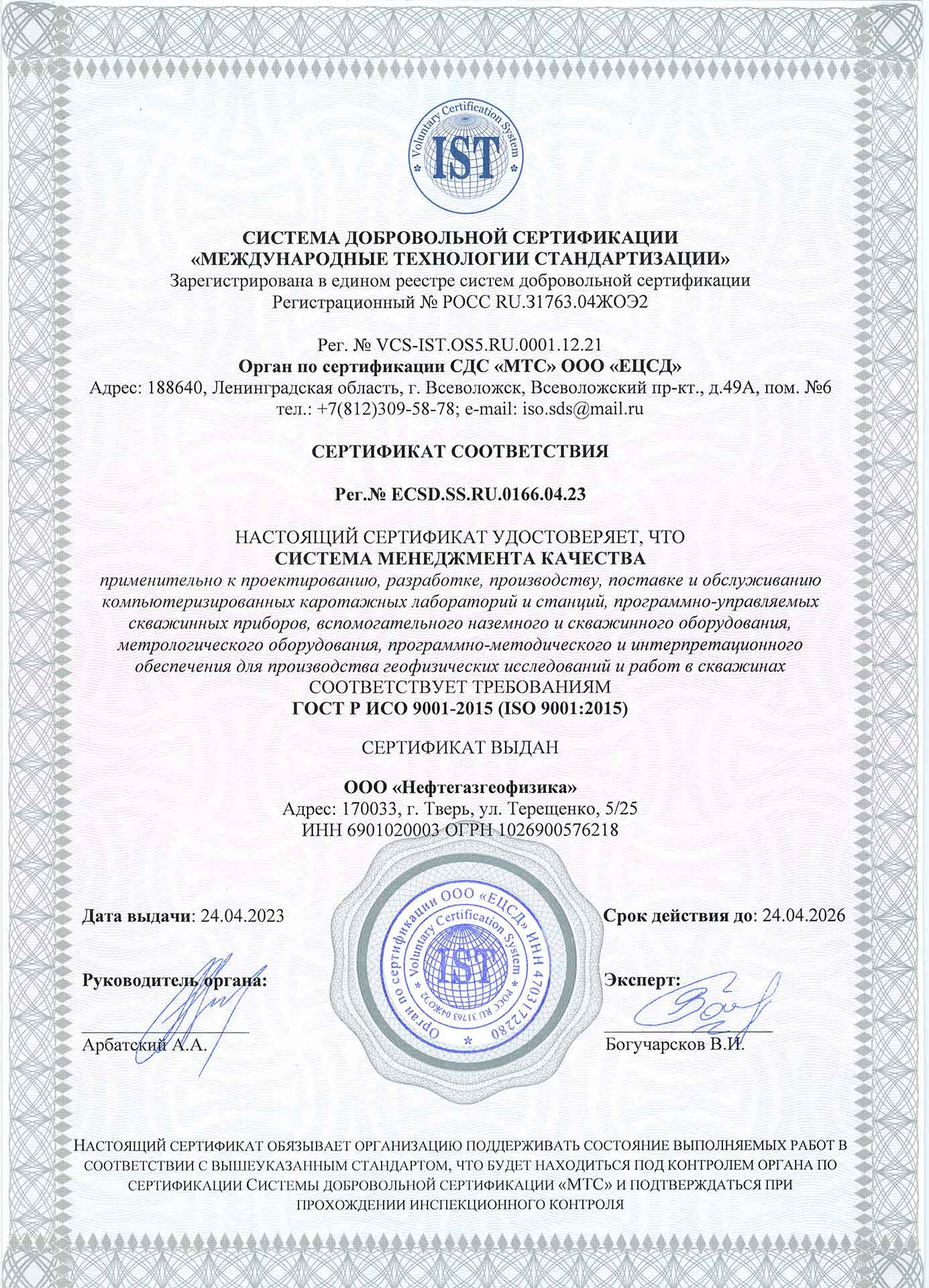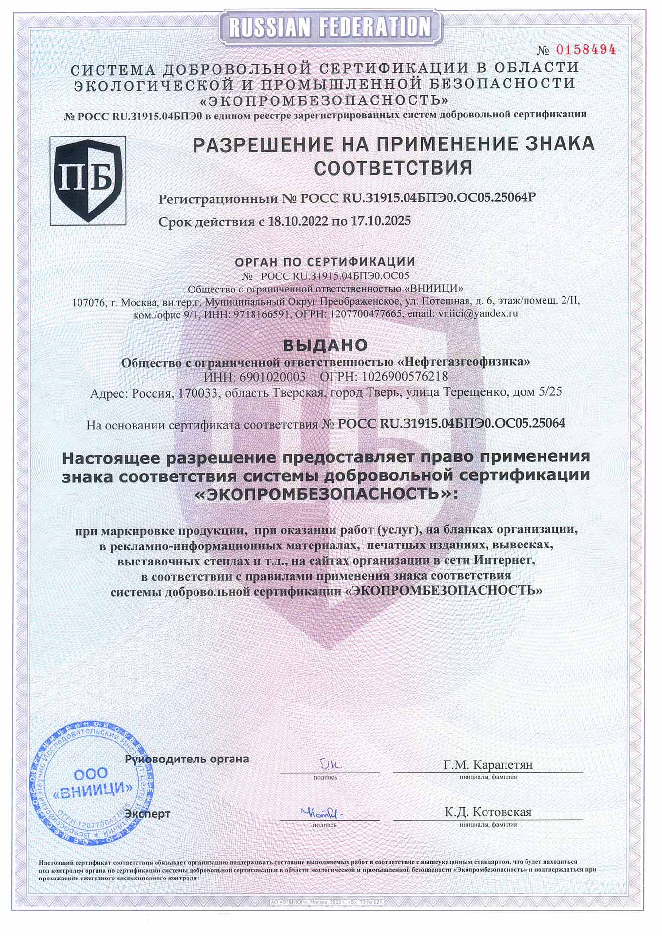 Достижение целей в области качества — одна из приоритетных задач ООО «Нефтегазгеофизика». Серьезное отношение к своей репутации на рынке нефтегазовой отрасли гарантирует качество продукции посредством своевременной сертификации и декларирования продукции, напрямую влияет на удовлетворённость заказчиков и партнёров, построение с ними долгосрочного и взаимовыгодного сотрудничества.