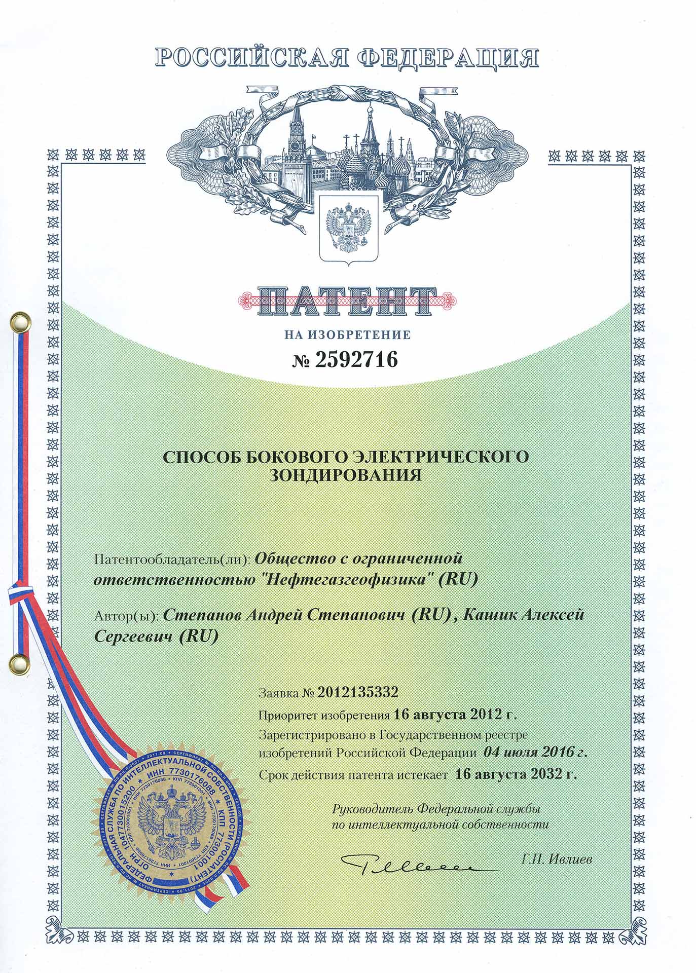 Патентное обеспечение инновационного развития ООО «Нефтегазгеофизика» заключается в продуманной и своевременной стратегии защиты результатов интеллектуальной деятельности (например, устройств и приборов для осуществления электрического каротажа; способов проведения бокового электрического зондирования, ядерного каротажа, каротажа с использованием ядерно-магнитного резонанса и др.). Наличие запатентованных разработок в сфере приборостроения обеспечивает конкурентные преимущества, способствует продвижению бизнеса, повышая деловую репутацию, выступает для партнеров по бизнесу, инвесторов, акционеров и заказчиков свидетельством высокого уровня компетентности, специализации и технических возможностей компании.