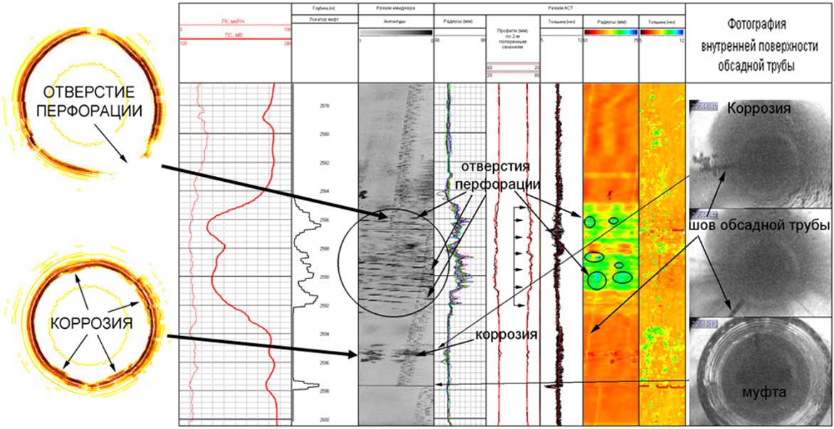 Рис.1.14. Выделение интервалов перфорации и коррозии обсадной колонны в режиме «Имиджер»